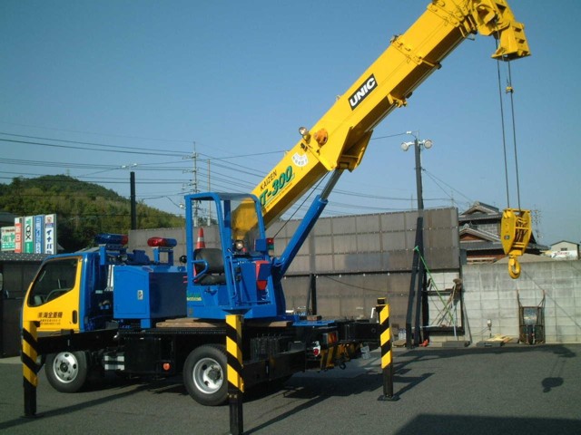 車幅1900mmのため狭い路地に進入でき、後方に5本目のアウトリガがあることで力強く転落車を引き上げます。 4tレッカーが進入できない路地で、ランドクルーザー級の車もこれ一台で引き上げることができます。 後方アウトリガ 追加ウェイト ブームトップ加工